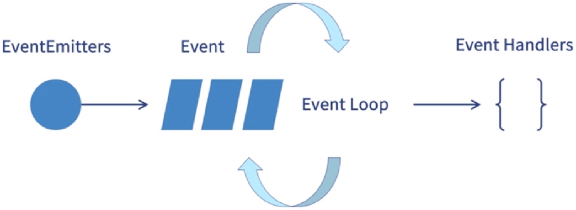 event只提供了EventEmitter一个对象,相当于事件触发,会触发很多事件,触发事件会进入EventLoop,一旦触发会被Event handlers捕获。 EventEmitter的核心就是事件触发的Emitter,事件监听的on功能进行封装,一个简单的EventEmitter绑定一个监听器,然后去监听事件。