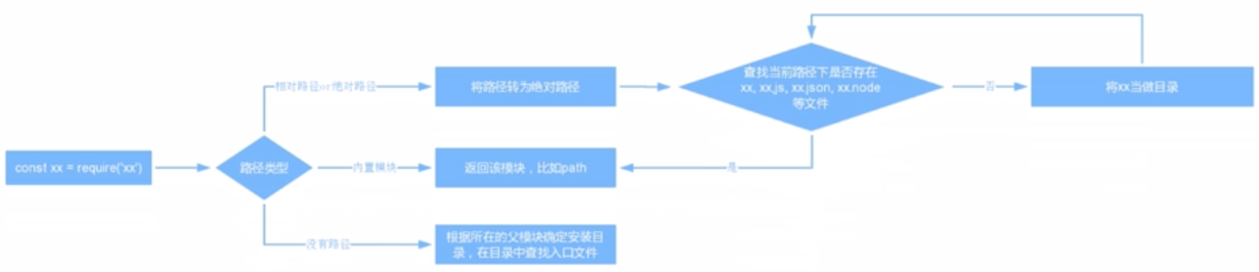 在一个文件require一个包的时候(const xx =require('xx')),node会看require里的路径类型,
